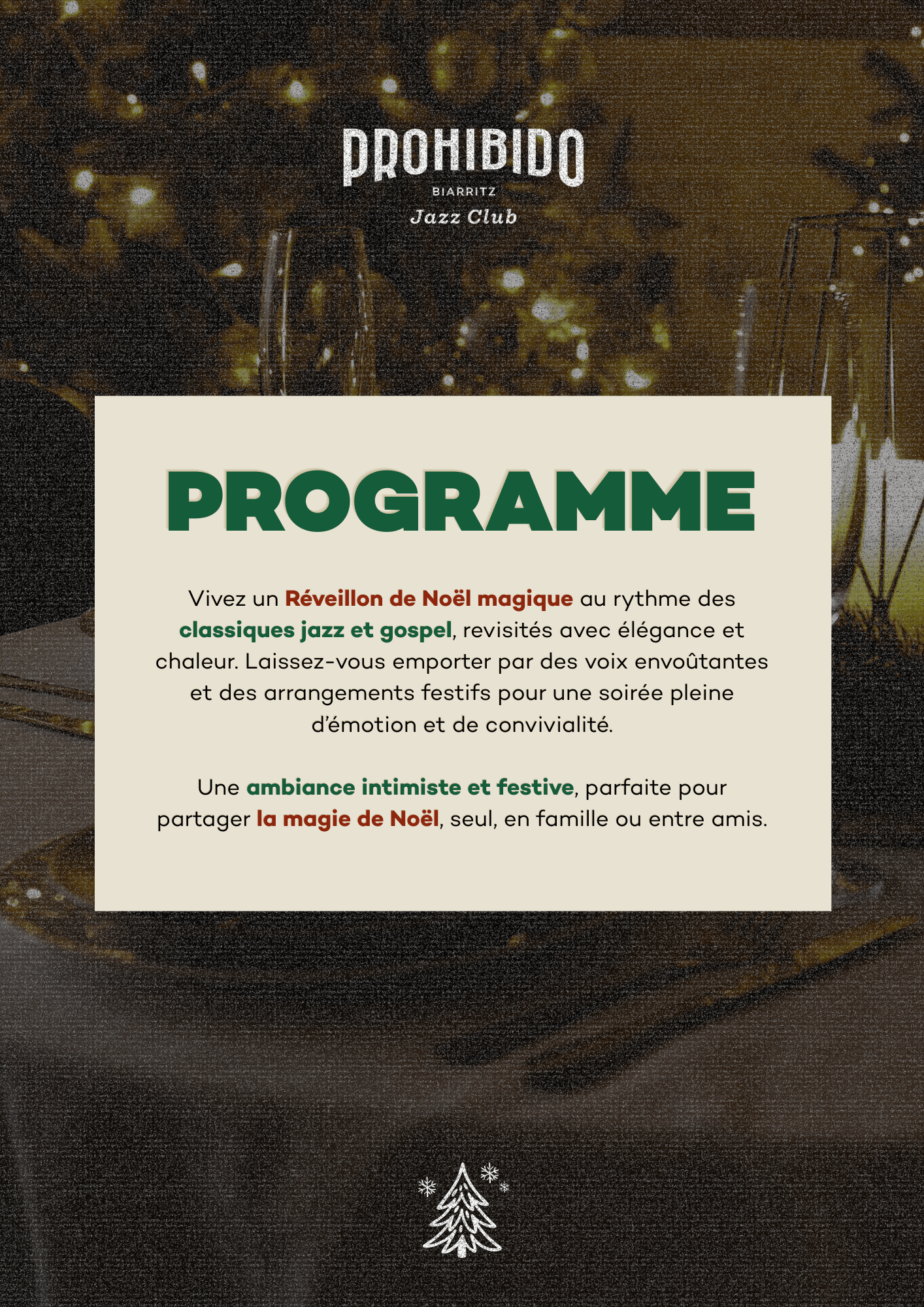 📅 Rendez-vous le 24 décembre au Prohibido Jazz Club – réservez dès maintenant votre table pour vivre une expérience de Noël exceptionnelle !