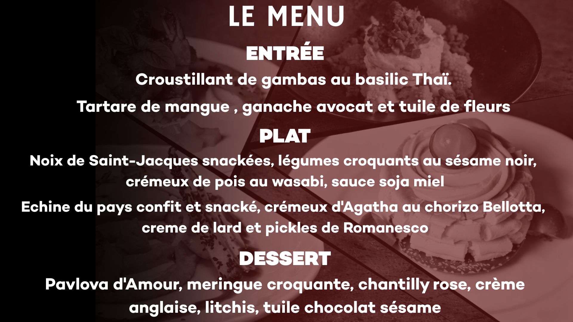 Cette soirée se vit autour d’un dîner-spectacle, accompagné d’un menu de qualité unique, imaginé spécialement pour l’occasion.